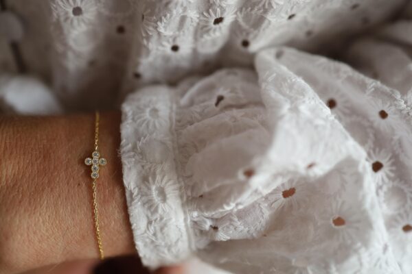 Narukvica na koncu cirkon križ pozlata