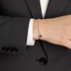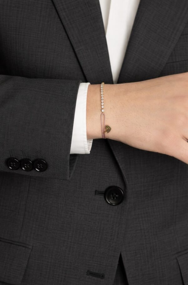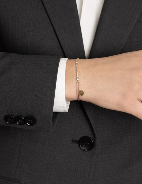Narukvica Tennis na koncu izrađena je od visokokvalitetnog nehrđajućeg čelika 316L, s 18 karatnom pozlatom i koncem. Proizvod je vodootporan.