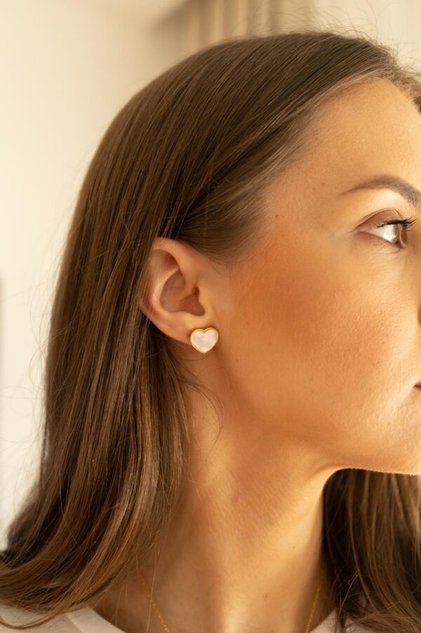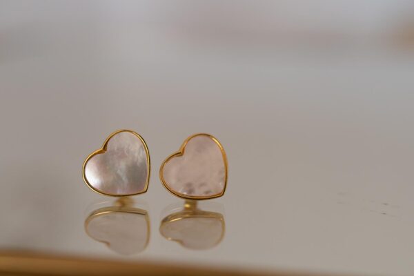 Naušnice “Mother of pearl srce” izrađene su od srebra 925 s pozlatom i prirodnog sedefa.