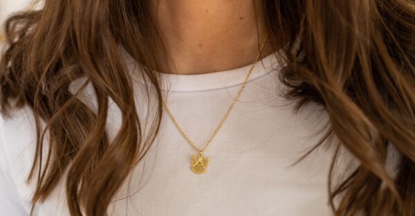 Ogrlica anđeo pozlata izrađena je od srebra 925 s pozlatom. Dužina ogrlice je 40 cm, uz produžetak od 3 cm.